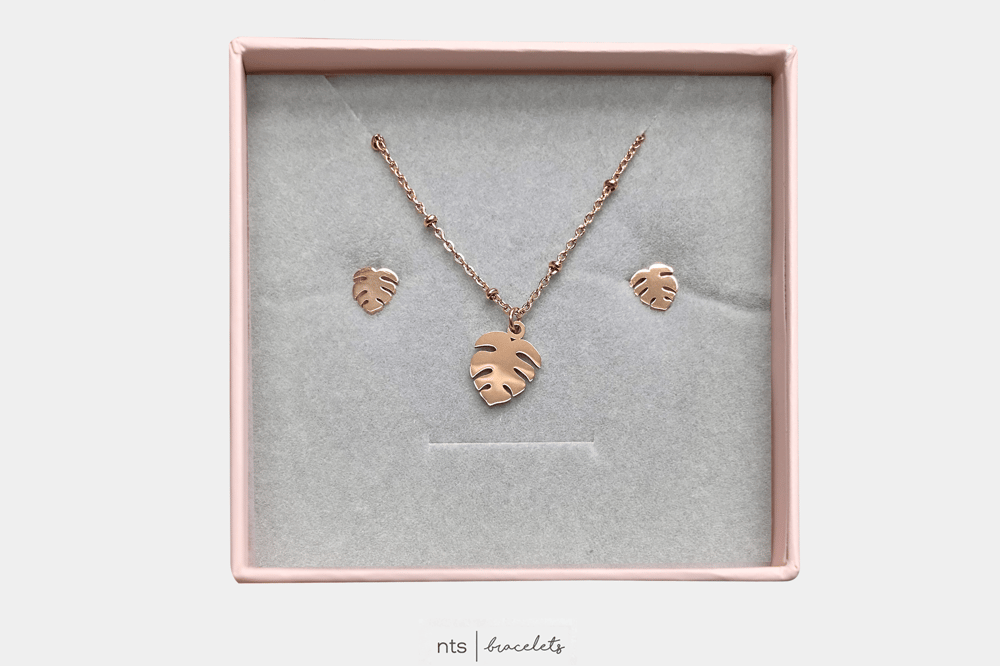ROSE GOLD MONSTERA NECKLACE & EARRING BUNDLE (Monstera + Rose Gold)