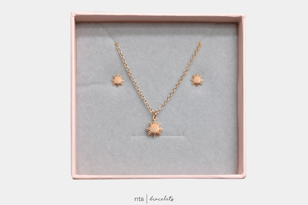 ROSE GOLD FILIPINA SUN NECKLACE & EARRING BUNDLE (Sun + Rose Gold)
