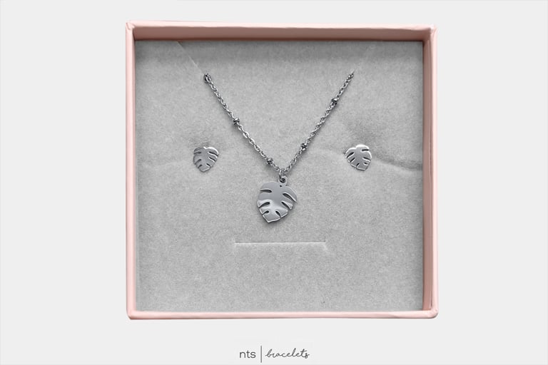 SILVER MONSTERA NECKLACE & EARRING BUNDLE (Silver)