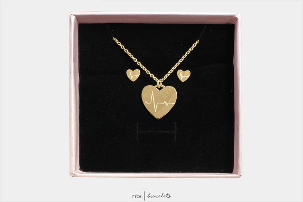 GOLD EKG NECKLACE & EARRING BUNDLE (Heart + Gold)